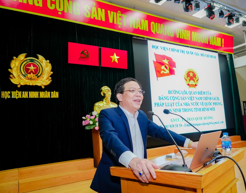 Tiến sĩ Trần Quốc Dương - Giảng viên Cao cấp, Học viện chính trị quốc gia Hồ Chí Minh giảng dạy tại lớp học.