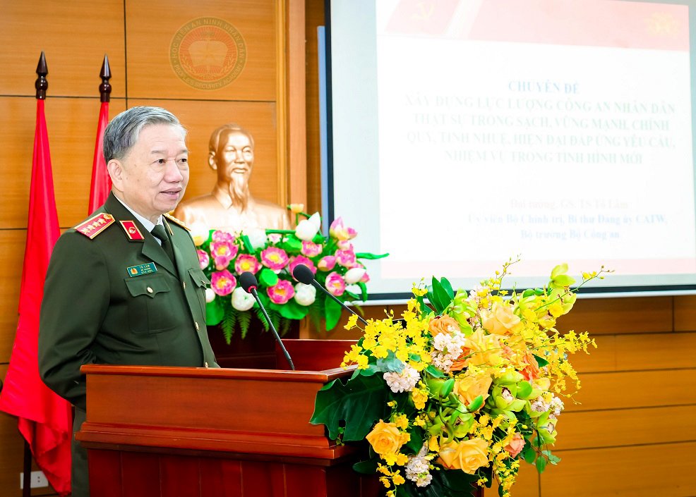 Sau Lễ Khai giảng, Đại tướng, GS.TS Tô Lâm - Ủy viên Bộ Chính trị, Bí thư Đảng ủy Công an Trung ương, Bộ trưởng Bộ Công an đã trực tiếp truyền đạt chuyên đề “Xây dựng lực lượng CAND thật sự trong sạch, vững mạnh, chính quy, tinh nhuệ, hiện đại đáp ứng yêu cầu, nhiệm vụ trong tình hình mới” cho học viên lớp bồi dưỡng. Bài giảng của đồng chí Bộ trưởng Bộ Công an đã cung cấp cơ sở lý luận và thực tiễn quan trọng, giúp cho học viên nhận thức sâu sắc và lĩnh hội đầy đủ về công tác xây dựng lực lượng CAND trong tình hình hiện nay, qua đó góp phần quan trọng trong việc thực hiện thắng lợi và thành công Nghị quyết số 12 của Bộ Chính trị.