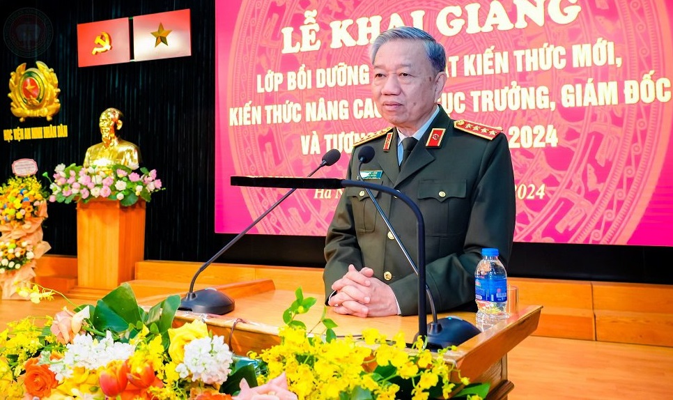 Phát biểu chỉ đạo, Đại tướng, GS.TS Tô Lâm - Ủy viên Bộ Chính trị, Bí thư Đảng ủy Công an Trung ương, Bộ trưởng Bộ Công an yêu cầu các học viên của lớp học nêu cao tinh thần, trách nhiệm của người lãnh đạo chỉ huy, tuân thủ các quy định, nội quy học tập, bồi dưỡng; sắp xếp công việc để tham gia học tập đầy đủ. Đồng thời, Bộ trưởng giao nhiệm vụ cho Học viện ANND tổ chức tốt nhất các điều kiện đảm bảo để lớp bồi dưỡng hoàn thành chương trình đào tạo.