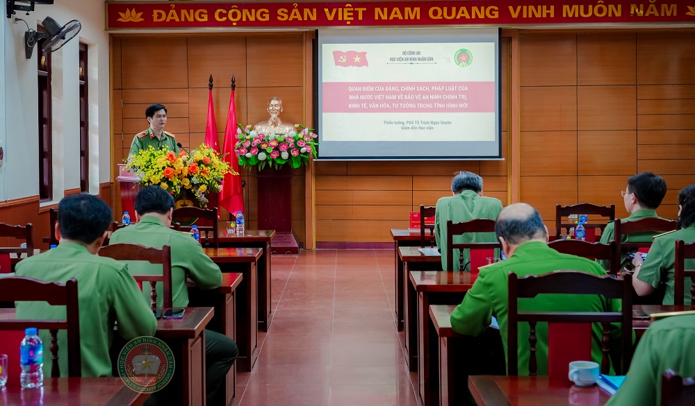 Bài giảng của đồng chí Giám đốc Học viện ANND giúp học viên lớp học nhận thức sâu sắc hơn về quan điểm, đường lối của Đảng, chính sách, pháp luật của Nhà nước về bảo vệ an ninh chính trị, kinh tế, văn hóa, tư tưởng trong tình hình mới; đồng thời, làm rõ nhiệm vụ, trách nhiệm của người lãnh đạo Công an các đơn vị, địa phương, người đứng đầu cấp ủy, chính quyền các cấp trong bảo vệ an ninh chính trị, an ninh kinh tế, an ninh văn hóa, tư tưởng. Từ đó, triển khai hiệu quả các biện pháp tăng cường, củng cố tiềm lực an ninh quốc gia và xử lý các tình huống phức tạp về an ninh, trật tự tại các đơn vị, địa phương, góp phần hoàn thành nhiệm vụ bảo vệ an ninh quốc gia, bảo đảm trật tự, an toàn xã hội theo chức năng, nhiệm vụ được giao.