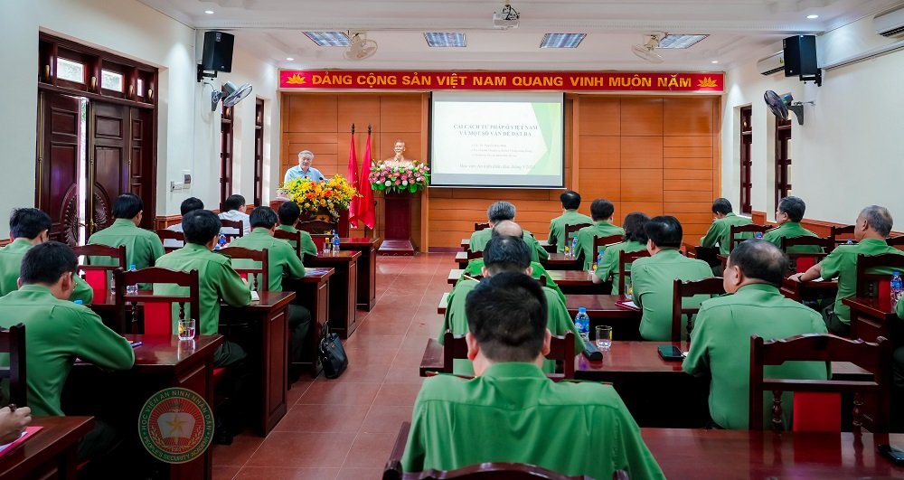 Ngày 27/3/2024, tại Học viện An ninh nhân dân, đồng chí GS.TS Nguyễn Hòa Bình - Ủy viên Bộ Chính trị, Chánh án Tòa án nhân dân tối cao giảng bài cho lớp bồi dưỡng cập nhật kiến thức mới, kiến thức nâng cao cho cục trưởng, giám đốc và tương đương trong Công an nhân dân năm 2024 với chuyên đề “Cải cách tư pháp ở Việt Nam và một số vấn đề đặt ra”.