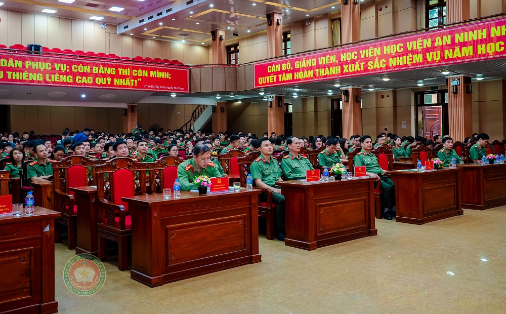 Tham dự buổi Lễ, có các đồng chí trong Đảng uỷ, Ban Giám đốc Học viện; đại diện Cục Đào tạo - Bộ Công an; đại diện lãnh đạo các đơn vị chức năng thuộc Học viện cùng toàn thể VB2K20 và Khoá LC4.