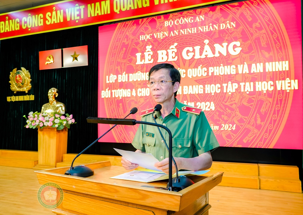 Bế giảng lớp bồi dưỡng kiến thức quốc phòng và an ninh đối tượng 4 cho học viên đang học tập tại Học viện An ninh nhân dân đợt 1 năm 2024
