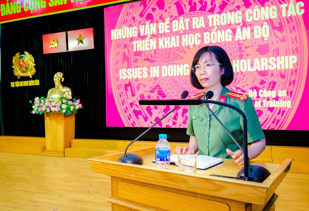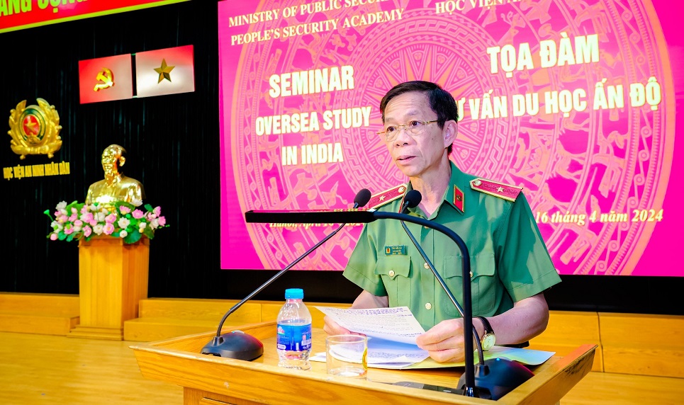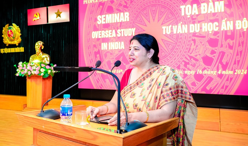 Ngày 16/4/2024, được sự đồng ý của lãnh đạo Bộ Công an, Học viện An ninh nhân dân (ANND) đã tổ chức buổi Tọa đàm “Tư vấn du học Ấn Độ” với mục đích giới thiệu con người, văn hóa, đất nước Ấn Độ cùng những thông tin cụ thể, hữu ích liên quan đến học bổng chính phủ Ấn Độ, góp phần tạo động lực, củng cố quyết tâm tham gia đăng ký dự tuyển các chương trình đào tạo đại học, sau đại học cho cán bộ, giảng viên, học viên của Học viện ANND và cán bộ, chiến sĩ thuộc các đơn vị chức năng của Bộ Công an Việt Nam