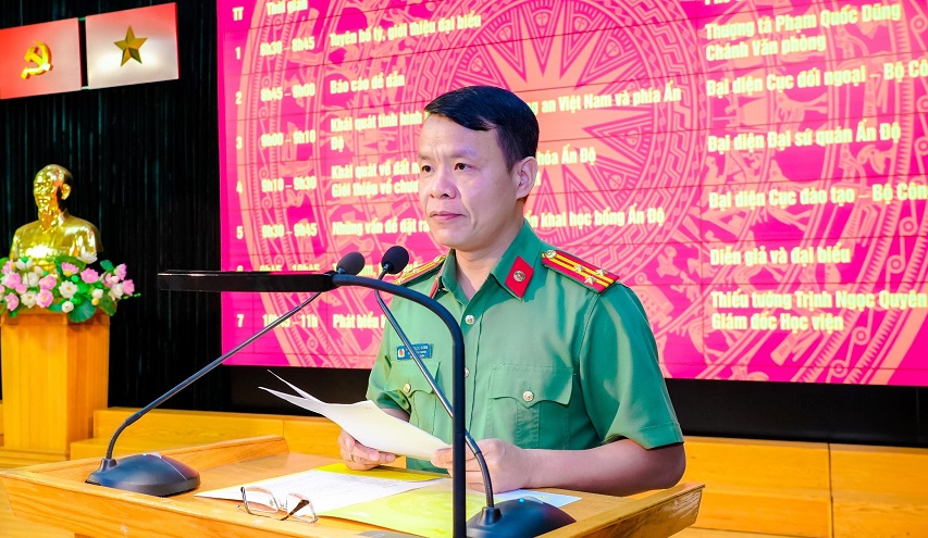 Phát biểu mở đầu buổi Tọa đàm, Thượng tá, PGS.TS Phạm Quốc Dũng, Chánh Văn phòng Học viện nhấn mạnh, tại Việt Nam, tội phạm mạng, tội phạm sử dụng công nghệ cao phát triển mạnh mẽ, gây thiệt hại lớn đối với Nhà nước, các tổ chức và cá nhân. Do đó, phát triển nguồn nhân lực chất lượng cao trong lĩnh vực an ninh mạng là một nhiệm vụ cấp thiết đối với Việt Nam nói chung và Bộ Công an Việt Nam nói riêng. Việc Ấn Độ cung cấp 10 suất học bổng đại học và 05 suất học tiến sĩ về an ninh mạng cho Bộ Công an Việt Nam đã thể hiện rõ nét mối quan hệ phối hợp song phương trong công tác đào tạo, nghiên cứu khoa học giữa hai bên. Đây là cơ hội để đội ngũ cán bộ, học viên của Bộ Công an Việt Nam được nghiên cứu, học tập và trao đổi kinh nghiệm với Ấn Độ, quốc gia hàng đầu về công nghệ thông tin và đảm bảo về an ninh mạng, phòng chống tội phạm công nghệ cao.