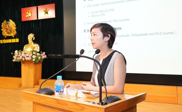 Thảo luận tại Tọa đàm, bà Rachna Srivastav, Bí thư Thứ nhất Đại sứ quán Ấn Độ tại Việt Nam khẳng định, Ấn Độ là quốc gia có diện tích lớn thứ 5 thế giới với nền kinh tế tăng trưởng nhanh với quy mô lớn thứ 5 thế giới. Ấn Độ cũng là quốc gia hội tụ tinh hoa của công nghệ thông tin với rất nhiều các doanh nghiệp, tập đoàn chuyên về lĩnh vực này đang phát triển mạnh mẽ. Bà Rachna Srivastav cũng cho biết, Ấn Độ và Việt Nam đã có 7 năm quan hệ đối tác chiến lược toàn diện, trong thời gian đó hai bên đã đạt được rất nhiều thành tựu trên nhiều lĩnh vực, đặc biệt là lĩnh vực an ninh. Việc triển khai cung cấp 15 suất học bổng ICCR cho bậc đại học và sau đại học tới cán bộ, giảng viên, học viên thuộc Bộ Công an Việt Nam là một trong chuỗi các hoạt động khẳng định hiệu quả hợp tác đôi bên.