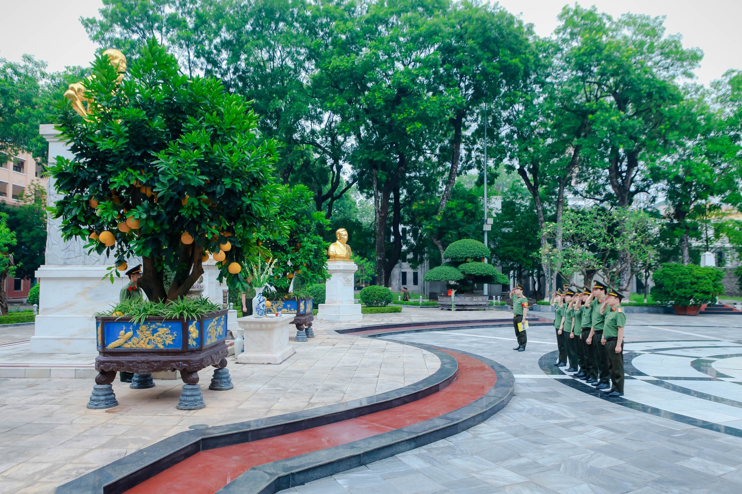 Cơ quan Ủy ban kiểm tra Đảng ủy Học viện ANND tổ chức dâng hương tượng đài Bác Hồ nhân dịp kỷ niệm 134 năm Ngày sinh của Người trước khi vào tham dự buổi Tọa đàm.