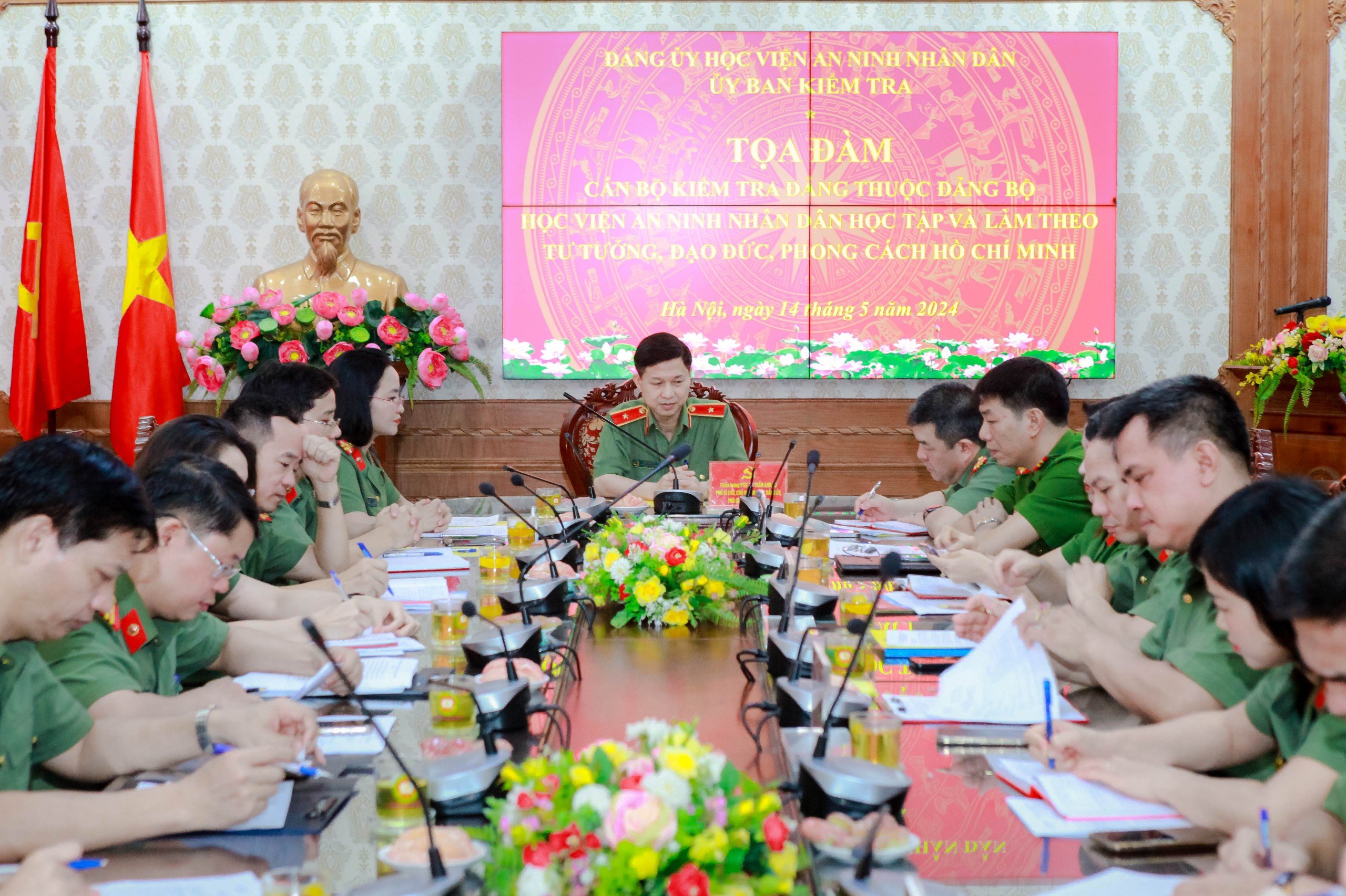 Hướng tới Kỷ niệm 134 năm Ngày sinh Chủ tịch Hồ Chí Minh (19/5/1890 - 19/5/2024) và 78 năm Ngày truyền thống Học viện An ninh nhân dân (ANND) (25/6/1946 - 25/6/2024), ngày 14/5/2024, Ủy ban kiểm tra Đảng ủy Học viện đã tổ chức buổi Tọa đàm với chủ đề “Cán bộ kiểm tra đảng thuộc Đảng bộ Học viện An ninh nhân dân học tập và làm theo tư tưởng, đạo đức, phong cách Hồ Chí Minh”. Thiếu tướng, PGS.TS Trần Anh Vũ - Phó Bí thư, Chủ nhiệm Ủy ban kiểm tra Đảng ủy, Phó Giám đốc Học viện ANND chủ trì buổi Tọa đàm.