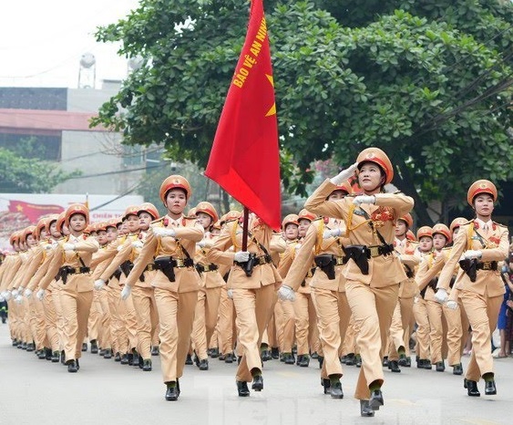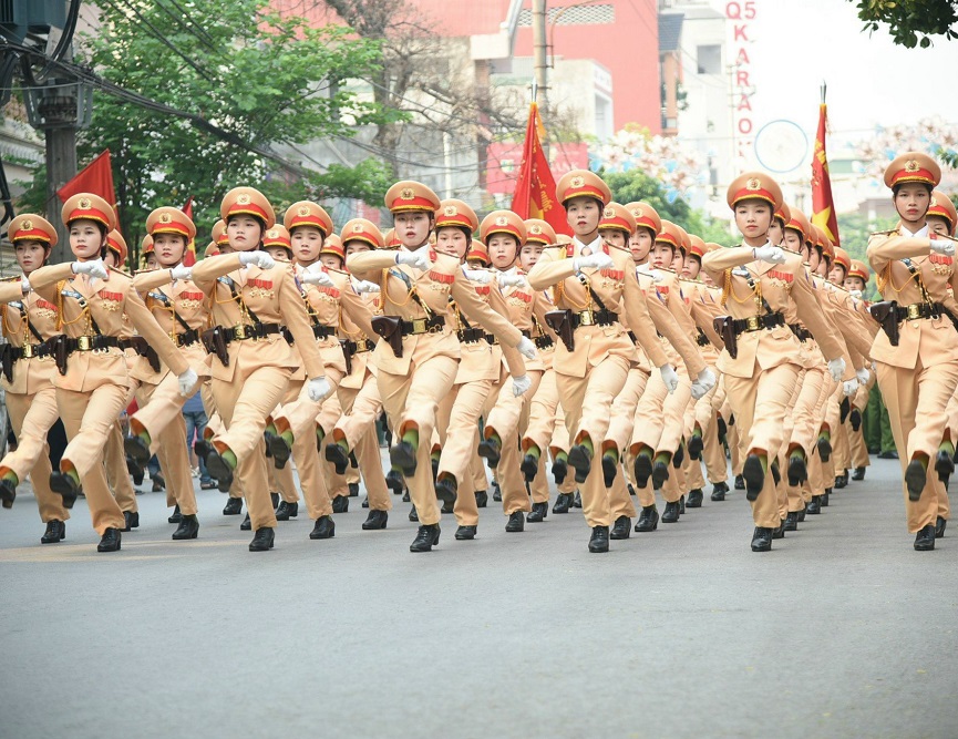 Khối nữ học viên Học viện An ninh nhân dân diễu binh, diễu hành tại Lễ kỷ niệm 70 năm chiến tháng Điện Biên Phủ ngày 7/5/2024.