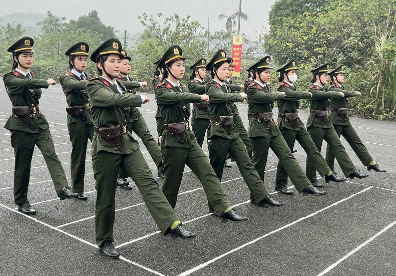 Khối nữ học viên Học viện An ninh nhân dân tích cực tập luyện.