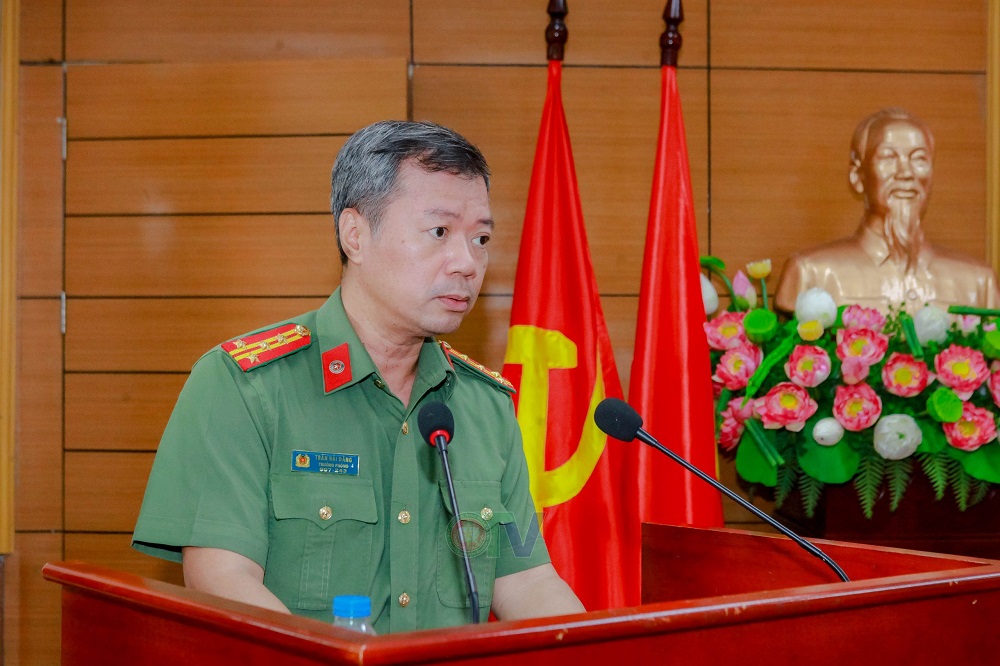 Đại tá Trần Hải Đăng - Trưởng phòng 2, Cục A04, Bộ Công an - đại diện cho học viên đại diện các học viên lớp bồi dưỡng phát biểu tại buổi Lễ.