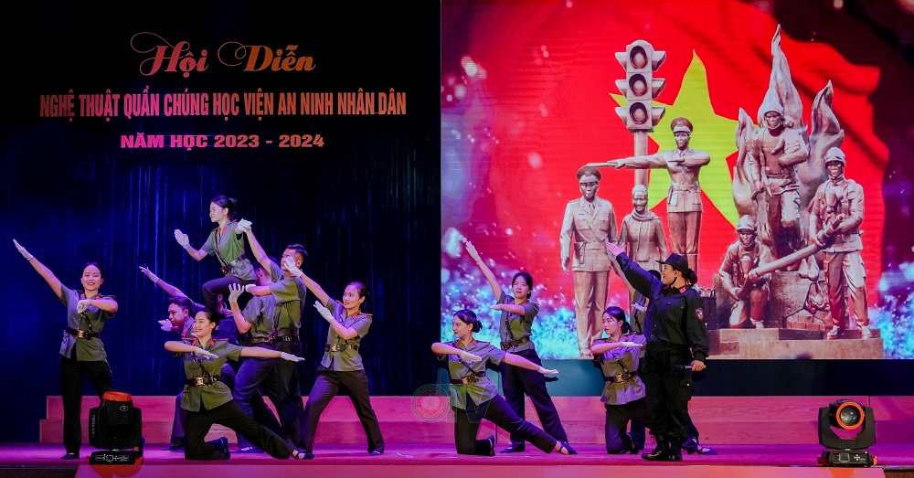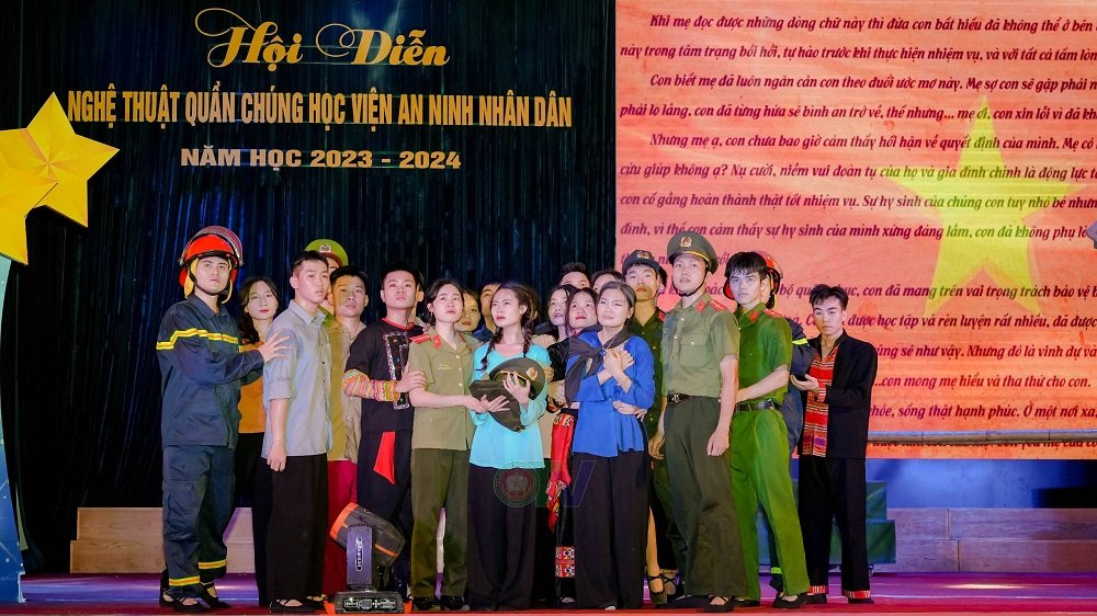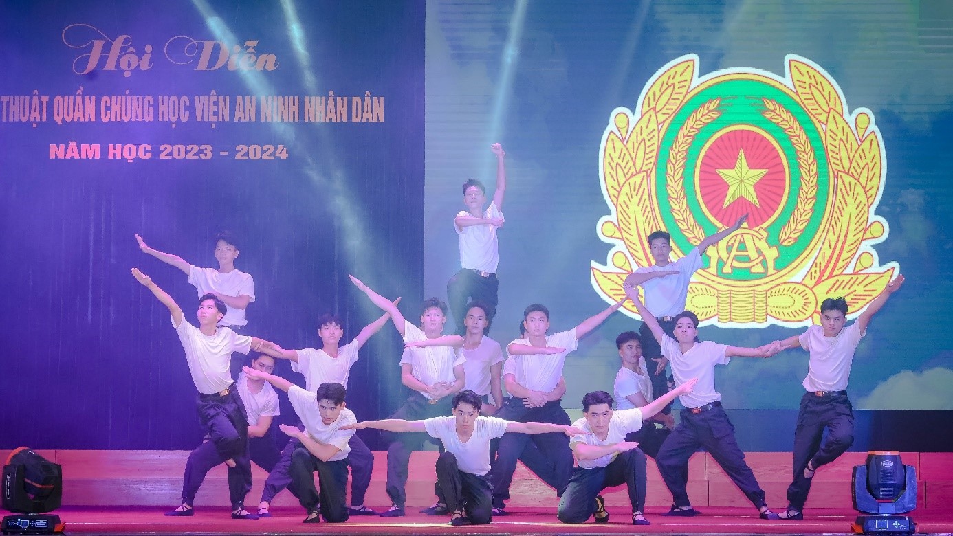 Hội diễn nghệ thuật quần chúng năm học 2023 - 2024 của Học viện An ninh nhân dân đã thành công rực rỡ. Đây là sân chơi nghệ thuật bổ ích và ý nghĩa, là dịp để cán bộ, giảng viên, công nhân viên, học viên Học viện giao lưu văn hoá; khơi dậy niềm tự hào và truyền thống yêu nước; duy trì và phát triển phong trào văn nghệ quần chúng trong Học viện, góp phần nâng cao đời sống tinh thần, tạo không khí thi đua sôi nổi, cổ vũ, động viên cán bộ, học viên tích cực học tập và làm theo Sáu điều Bác Hồ dạy Công an nhân dân, quyết tâm phấn đấu hoàn thành xuất sắc nhiệm vụ được giao và lan tỏa hình ảnh đẹp về người chiến sĩ An ninh nhân dân./.