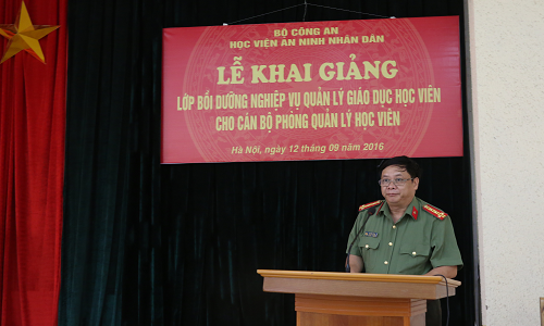 Phát biểu khai giảng lớp bồi dưỡng, đồng chí Phó Giám đốc Học viện đã nhấn mạnh vai trò đặc biệt quan trọng của công tác quản lý giáo dục học viên trong các trường Công an nhân dân và yêu cầu cấp thiết về việc chuẩn hóa trình độ và năng lực điều hành của đội ngũ cán bộ quản lý học viên. Do đó, Đảng ủy, Ban Giám đốc Học viện ANND luôn quan tâm, chỉ đạo công tác đào tạo, bồi dưỡng cán bộ làm công tác quản lý giáo dục học viên bằng nhiều hình thức, trong đó, kể từ năm học 2016-2017, Ban Giám đốc Học viện đã có quyết định ban hành kế hoạch tổ chức một chương trình bồi dưỡng bài bản, quy củ, đi sâu vào một số chuyên đề mới phát sinh trong thực tiễn công tác nhằm đáp ứng yêu cầu của công tác quản lý giáo dục học viên trong tình hình mới. Đồng chí Phó giám đốc yêu cầu cán bộ tham gia lớp bồi dưỡng phải phát huy tinh thần trách nhiệm, tích cực, chủ động tham gia và hoàn thành tốt các nội dung của chương trình bồi dưỡng nhằm vận dụng những kiến thức được trang bị vào việc quản lý, chỉ huy lớp học, tổ chức tốt các phong trào thi đua học tập, rèn luyện cho học viên.