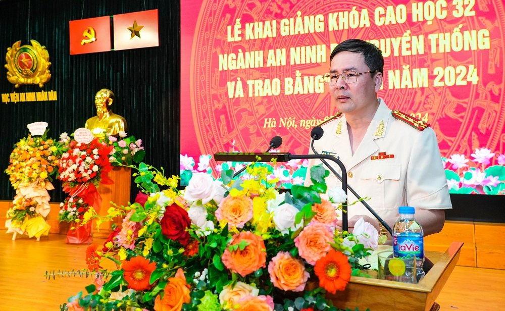 Phát biểu tại buổi Lễ, Đại tá, GS.TS Nguyễn Trường Thọ - Phó Giám đốc Học viện ANND chúc mừng các học viên Khoá cao học 32 ngành An ninh phi truyền thống đã xuất sắc vượt qua kỳ xét tuyển năm 2024; biểu dương, ghi nhận những nỗ lực, cố gắng, sự bền bỉ, tinh thần học tập nghiêm túc và những thành tích mà các tân tiến sĩ đã đạt được trong quá trình học tập, nghiên cứu để được công nhận học vị tiến sĩ. Đồng chí Phó Giám đốc khẳng định, những đề tài luận án mà các tân tiến sĩ đã bảo vệ thành công đều là những vấn đề có tính thời sự, cấp thiết về lý luận và thực tiễn; nhiều vấn đề mới đã được mạnh dạn nghiên cứu, đưa ra nhiều giải pháp mang tính đột phá để giải quyết những vướng mắc trong thực tiễn, đóng góp thiết thực vào công tác tổng kết thực tiễn, xây dựng, phát triển lý luận khoa học an ninh.