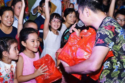 Nghệ sĩ Xuân Bắc trao quà cho các cháu thiếu nhi