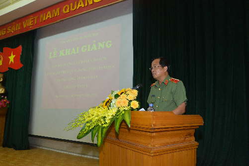Đại diện học viên khóa học, đồng chí Đại tá Phạm Gia Chiến – Trưởng phòng tham mưu công an tỉnh Lào Cai phát biểu cảm ơn sự chuẩn bị chu đáo về mọi mặt trong quá trình đón tiếp, nhập học cho các đồng chí học viên. Mỗi đồng chí học viên khóa học đều vui mừng, phấn khởi và nhận thức sâu sắc: việc tham dự khóa học là điều kiện để củng cố kiến thức, kịp thời cập nhật tình hình, chủ trương, giải pháp đảm bảo an ninh quốc gia; đồng thời có điều kiện giao lưu, học hỏi kinh nghiệm với các đồng nghiệp trên mọi miền của Tổ quốc.