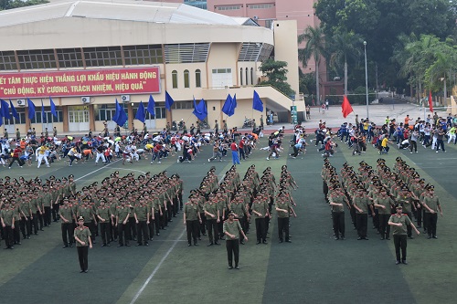 Bên cạnh đó, cán bộ, giảng viên, học viên Học viện đang nỗ lực tập luyện chuẩn bị cho Lễ khai giảng với màn diễu binh diễu hành, võ thuật, trống hội, biểu diễn nghệ thuật với số lượng lớn học viên tham gia.