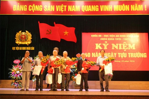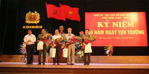 Ngày 15-10, tại Hà Nội, Khóa D8-Học viện An ninh nhân dân (1976-1981) đã kỷ niệm 40 năm ngày tựu trường và tri ân các thế hệ thầy cô giáo dưới mái trường C500 anh hùng. Tới dự lễ kỷ niệm có Thượng tướng Lê Quý Vương, Ủy viên Trung ương Đảng, Thứ trưởng Bộ Công an; Trung tướng, GS.TS Nguyễn Văn Ngọc, Giám đốc Học viện ANND, các đồng chí trong Ban giám đốc Học viện, các thế hệ thầy cô giáo và gần 500 cựu học viên Khóa D8, niên khóa 1976-1981.