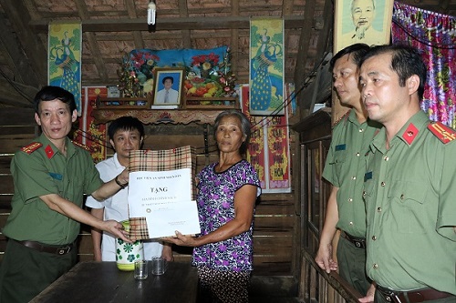 Đồng chí đại tá Lê Ngọc An - Phó Viện trưởng Viện khoa học An ninh - Học viện An ninh nhân dân trao quà cho nhân dân vùng lũ Hương Khê |