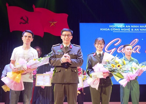Trung tá Sử Ngọc Anh, phụ trách Khoa CN&ANTT trao thưởng cho các đội đạt giải Phụ xuất sắc