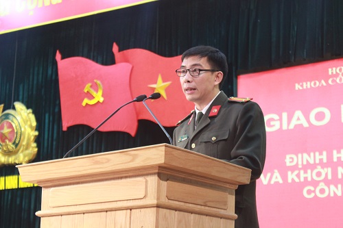 Đồng chí Trung tá Sử Ngọc Anh, Phụ trách Khoa CN&ANTT đọc diễn văn khai mạc |