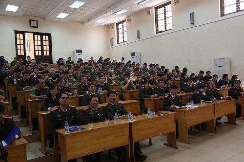 Với sự tin tưởng và quyết tâm đó, thay mặt Đảng ủy, Ban Giám đốc Học viện ANND, đồng chí Đại tá PGS.TS Lê Văn Thắng – Phó Giám đốc Học viện long trọng tuyên bố khai giảng khóa học.