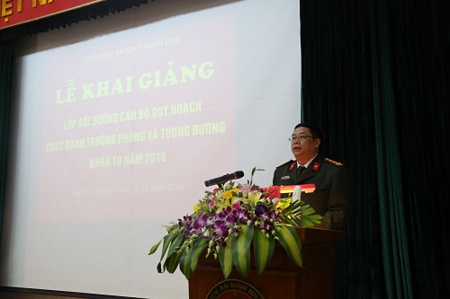 Tại Lễ khai giảng , đồng chí Đại tá PGS.TS Lê Văn Thắng – Phó Giám đốc Học viện đã nhấn mạnh: Đảng và Nhà nước ta luôn xác định, đào tạo và bồi dưỡng cán bộ là khâu đặc biệt quan trọng của công tác cán bộ, là nhiệm vụ quan trọng, thường xuyên của Đảng, Nhà nước góp phần thực hiện thành công sự nghiệp công nghiệp hóa, hiện đại hóa đất nước. Quán triệt quan điểm đó, Đảng ủy Công an Trung ương và lãnh đạo Bộ Công an chỉ đạo tiếp tục đẩy mạnh công tác đào tạo, bồi dưỡng cán bộ công an, trong đó có bồi dưỡng cán bộ quy hoạch chức danh lãnh đạo cấp Trưởng phòng và tương đương.