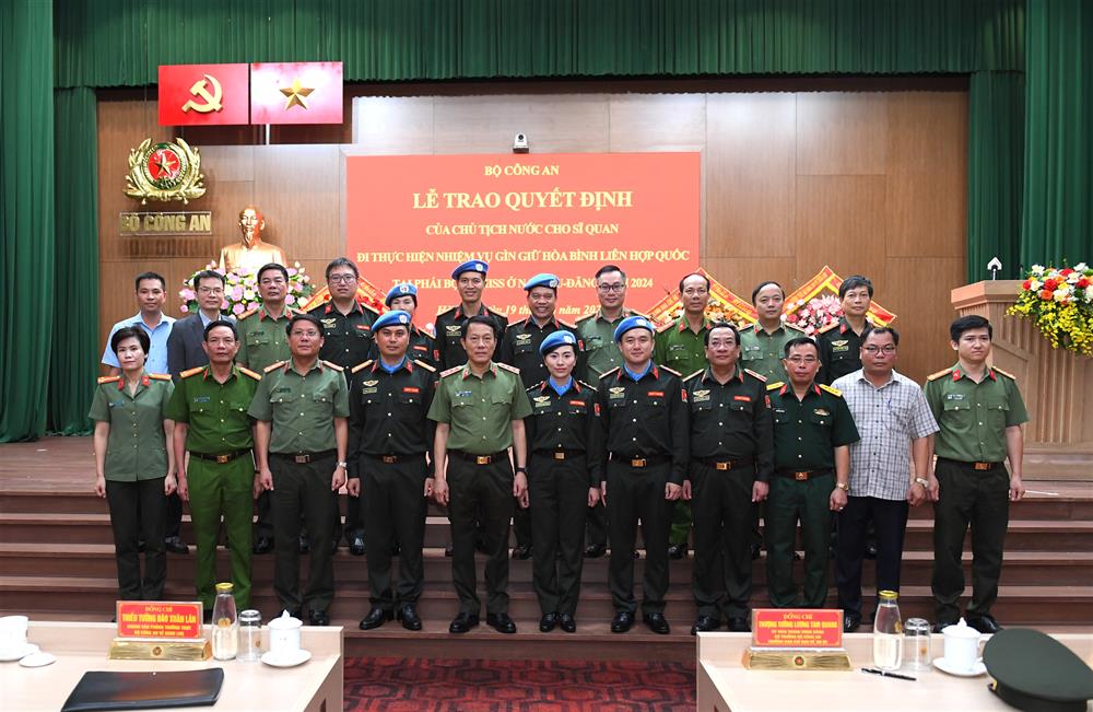 Ngày 19/6/2024, tại Hà Nội, thừa uỷ quyền của Chủ tịch nước, Chủ tịch Hội đồng Quốc phòng và An ninh, Thống lĩnh lực lượng vũ trang nhân dân, Bộ Công an tổ chức Lễ trao Quyết định của Chủ tịch nước về việc cử sĩ quan tham gia hoạt động GGHB LHQ đối với 03 sĩ quan CAND đi thực hiện nhiệm vụ GGHB tại Phái bộ UNMISS năm 2024. Thượng tướng Lương Tam Quang, Ủy viên Trung ương Đảng, Bộ trưởng Bộ Công an, Trưởng Ban Chỉ đạo triển khai Đề án số 05 CAND Việt Nam tham gia hoạt động GGHB LHQ chủ trì buổi Lễ.