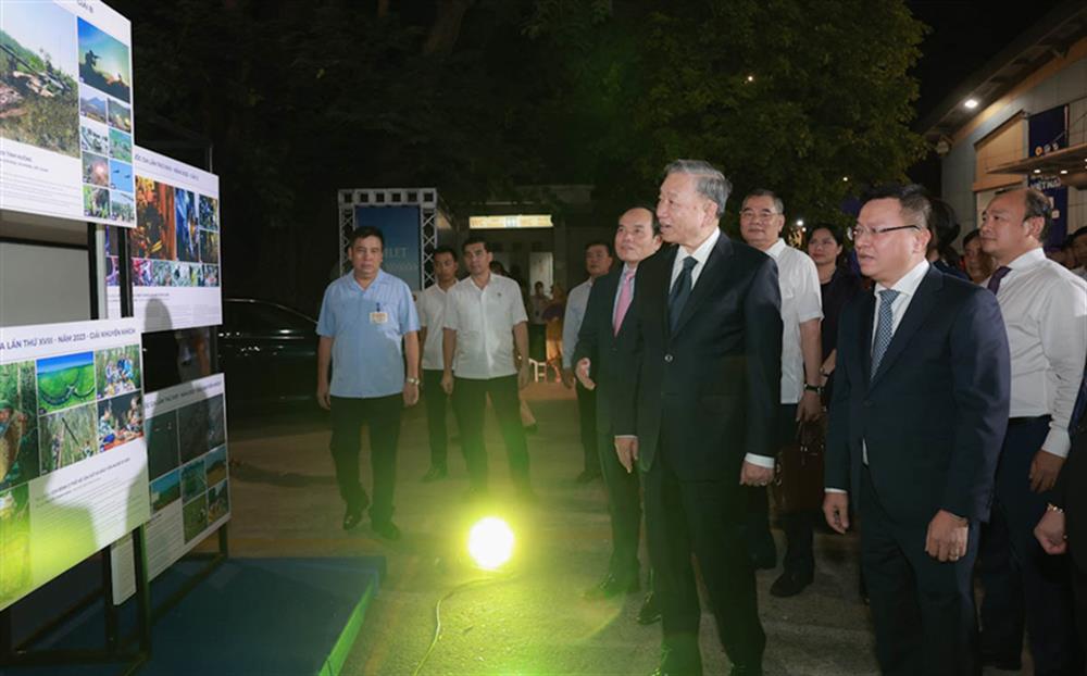 Chủ tịch nước Tô Lâm và các đại biểu tham quan triển lãm tại lễ trao giải. Ảnh: Hải Nguyễn |
