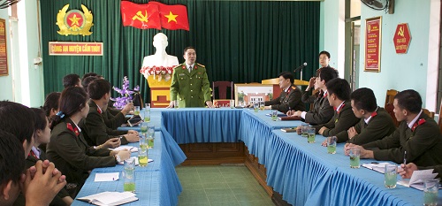 Đồng chí Thượng tá Lữ Văn Đồng – Trưởng Công an huyện Cẩm Thủy báo cáo chuyên đề