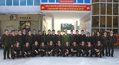 Đoàn lưu học viên Lào chụp ảnh lưu niệm với lãnh đạo, cán bộ, chiến sĩ công an huyện Cẩm Thủy, Thanh Hóa.
