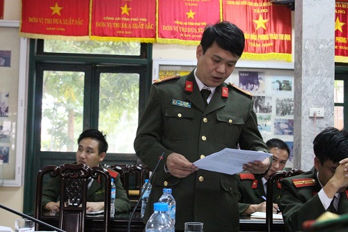 Đồng chí Trung tá Cao Việt Hải - Phó trưởng phòng An ninh điều tra Công an tỉnh Phú Thọ báo cáo chuyên đề