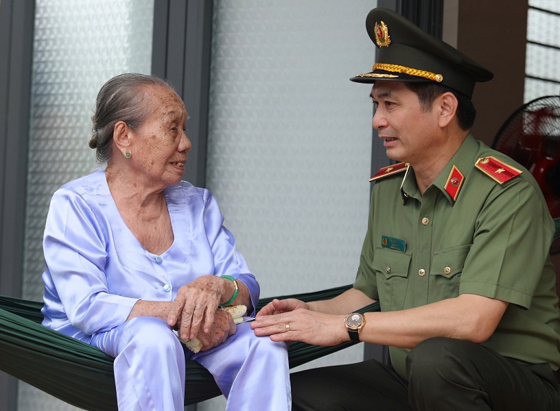 Thiếu tướng, PGS.TS Trịnh Ngọc Quyên, Bí thư Đảng ủy, Giám đốc Học viện cùng đại diện lãnh đạo các đơn vị chức năng thuộc Học viện thăm hỏi, tặng quà mẹ Việt Nam anh hùng Bùi Thị Hòe và mẹ Hà Thị Tuất.