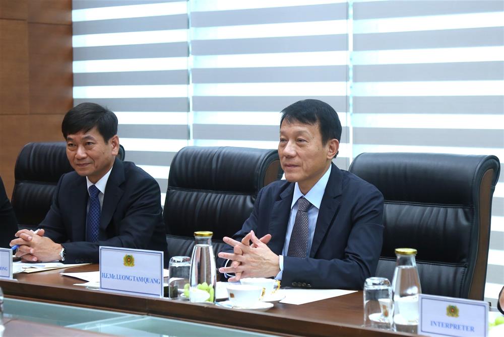Phát biểu tại buổi tiếp, Bộ trưởng Lương Tam Quang nhấn mạnh, mối quan hệ giữa hai Bộ được thiết lập từ năm 1966, đến nay hai Bên đã hợp tác trên tất cả lĩnh vực thực thi pháp luật với tinh thần cởi mở, tương thân tương ái, hỗ trợ lẫn nhau.