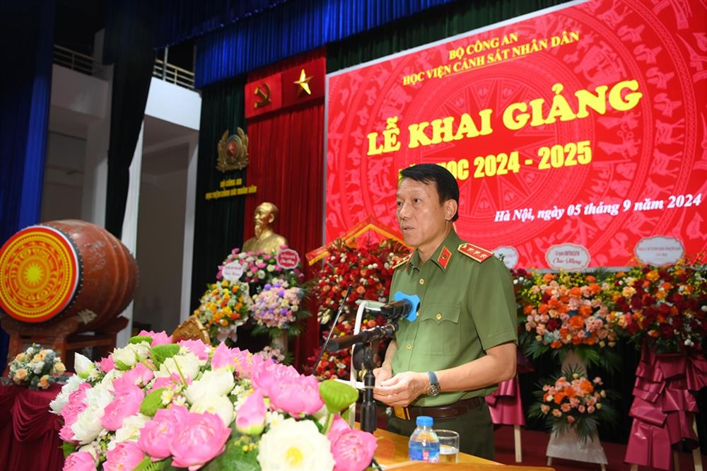 Trình bày diễn văn tại Lễ Khai giảng năm học mới 2024 - 2025, Trung tướng, GS.TS Trần Minh Hưởng, Giám đốc Học viện CSND nhấn mạnh: Dưới sự lãnh đạo, chỉ đạo sát sao của Đảng ủy Công an Trung ương, lãnh đạo Bộ Công an, sự quan tâm phối hợp, giúp đỡ của các bộ, ban, ngành, địa phương, trong năm học 2023 - 2024, toàn thể cán bộ, giảng viên và học viên Học viện CSND đã đoàn kết, nỗ lực hoàn thành xuất sắc nhiệm vụ chính trị năm học đề ra.