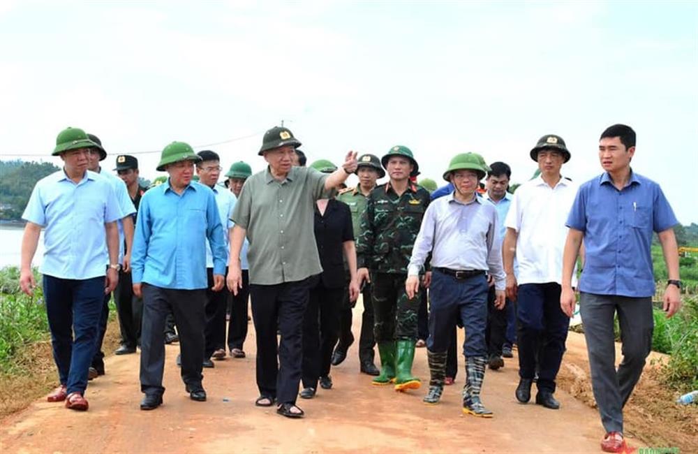 Tổng Bí thư, Chủ tịch nước Tô Lâm đã tới thăm hỏi, động viên các lực lượng đang tập trung xử lý mạch sủi và gia cố tuyến đê xung yếu tại xã Trường Sinh, huyện Sơn Dương, tỉnh Tuyên Quang; thăm hỏi người dân đang được sơ tán tới Nhà văn hóa Thôn Phú Thọ 1, xã Trường Sinh.