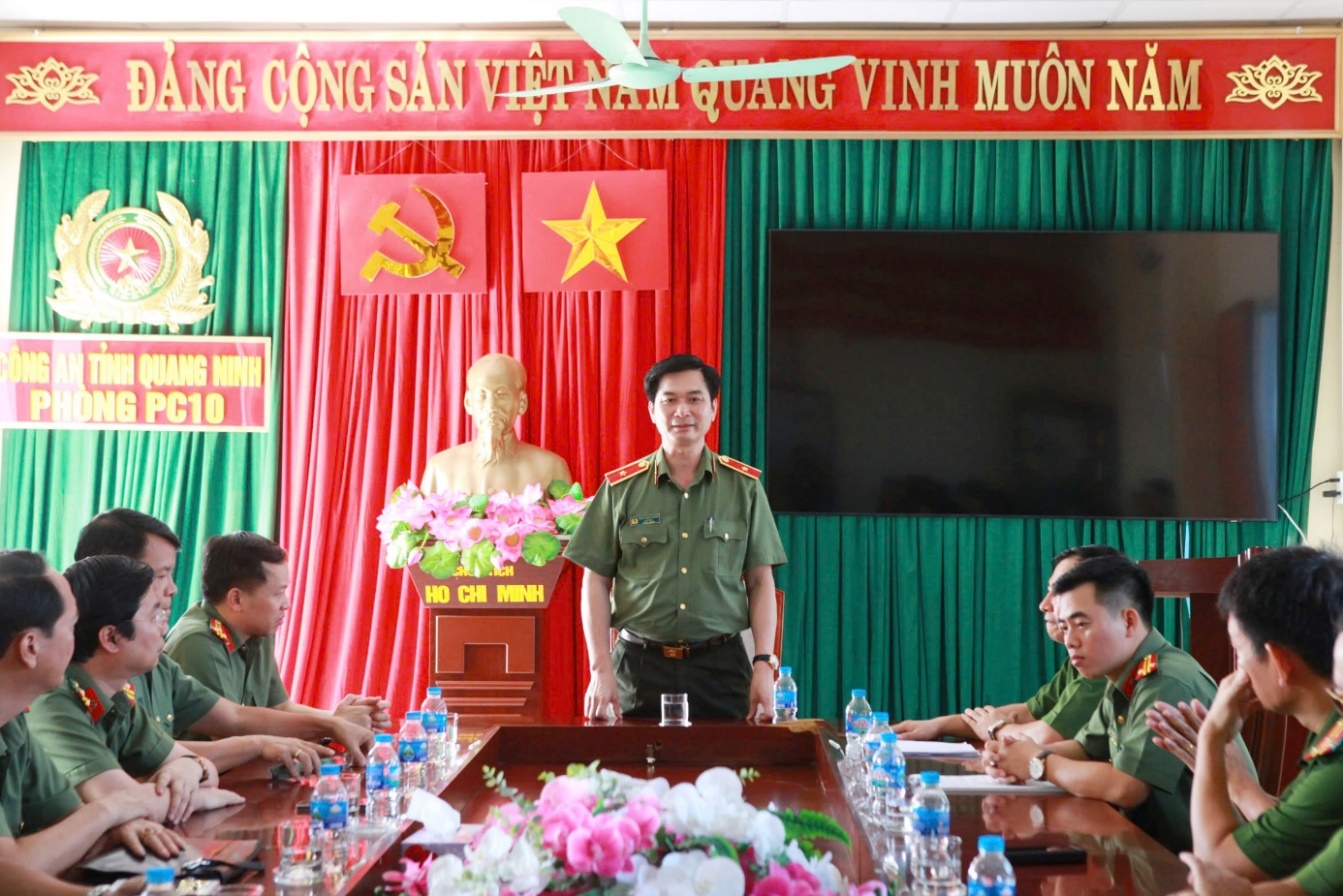 Làm việc với Đoàn, có Thượng tá Phạm Văn Dũng - Phó Giám đốc Công an tỉnh; Thượng tá Trần Thái Bình - Trưởng Phòng Cảnh sát thi hành án hình sự và hỗ trợ tư pháp cùng lãnh đạo, cán bộ chiến sĩ trong đơn vị; đại diện lãnh đạo UBND và Uỷ ban MTTQ thành phố Hạ Long.