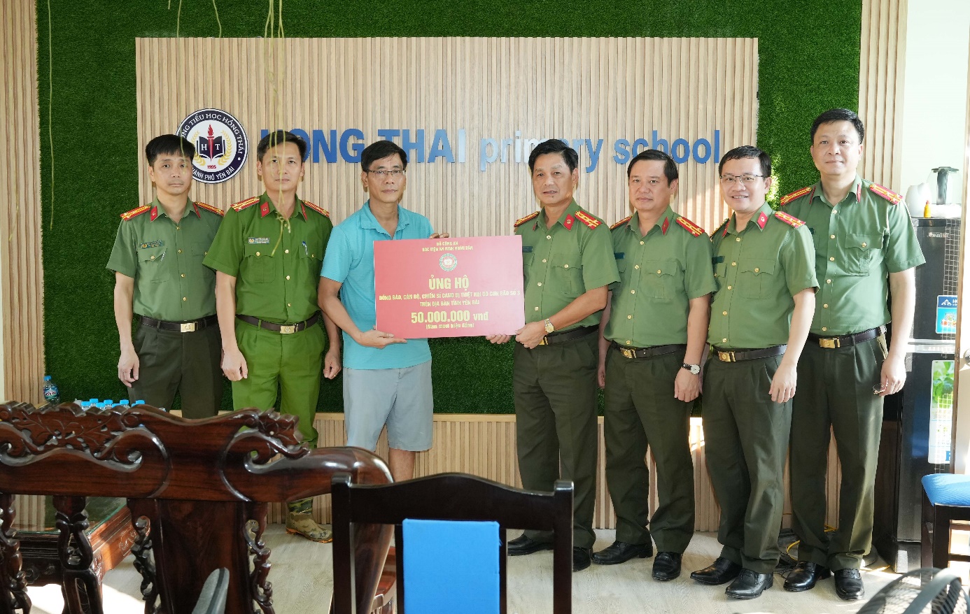 Đoàn công tác của Học viện An ninh nhân dân trao tặng ủng hộ 50 triệu đồng cho thầy, trò trường tiểu học Hồng Thái, thành phố Yên Bái.