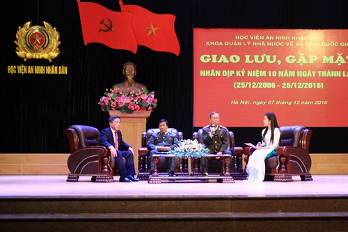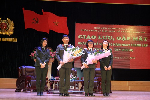 Ngày 7/12/2016 , Khoa Quản lý Nhà nước về An ninh quốc gia (QLNN về ANQG) thuộc Học viện An ninh nhân dân, đã tổ chức buổi Giao lưu, gặp mặt ôn lại những kỷ niệm giữa các thế hệ cán bộ, giảng viên đã và đang công tác tại Khoa với toàn thể các học viên, nhân kỷ niệm 10 năm Ngày thành lập Khoa QLNN về ANQG (25-12-2006 – 25-12-2016).