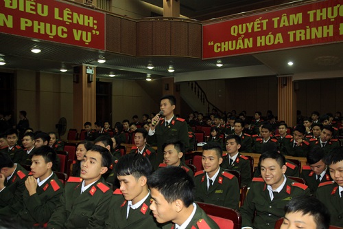 Học viên của Khoa giao lưu, gửi câu hỏi đến các đại biểu khách mời.