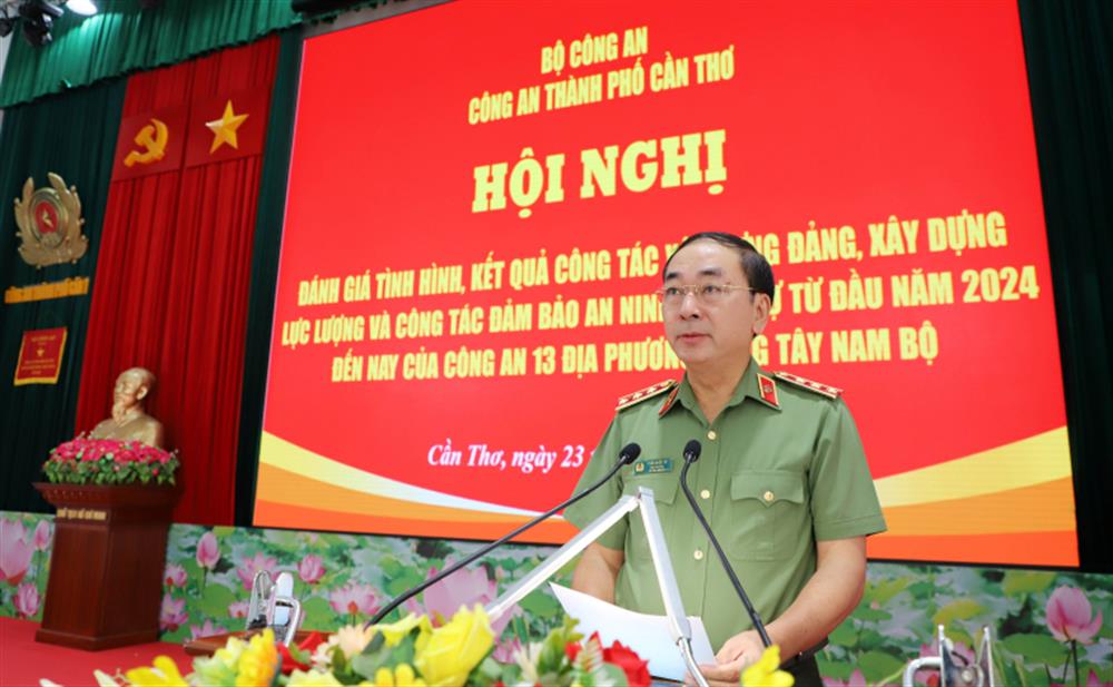 Ngày 23/9/2024, tại Công an thành phố Cần Thơ, Thượng tướng Trần Quốc Tỏ, Ủy viên Trung ương Đảng, Phó Bí thư Đảng ủy Công an Trung ương, Thứ trưởng Bộ Công an chủ trì Hội nghị đánh giá tình hình, kết quả công tác xây dựng Đảng, xây dựng lực lượng và công tác bảo đảm an ninh, trật tự (ANTT) từ đầu năm 2024 đến nay của Công an 13 địa phương vùng Tây Nam Bộ.