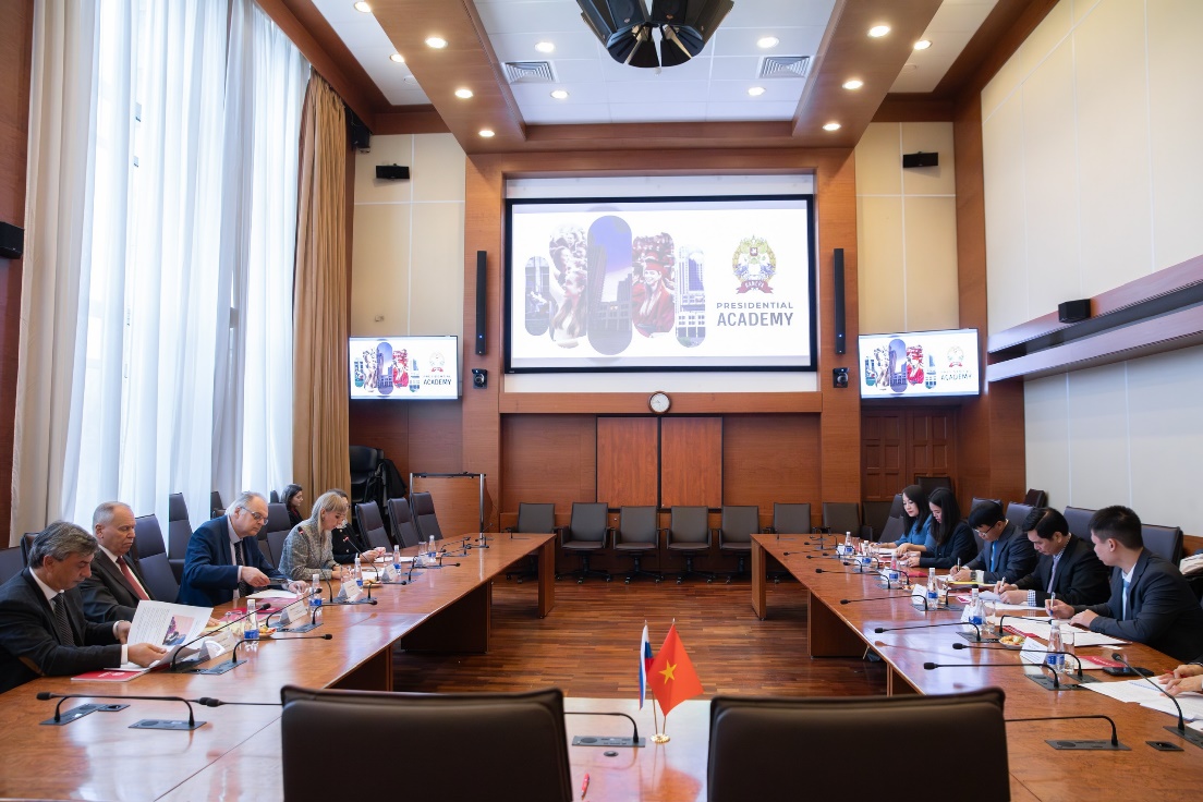 Đoàn công tác của Học viện Ranepa tại buổi làm việc.