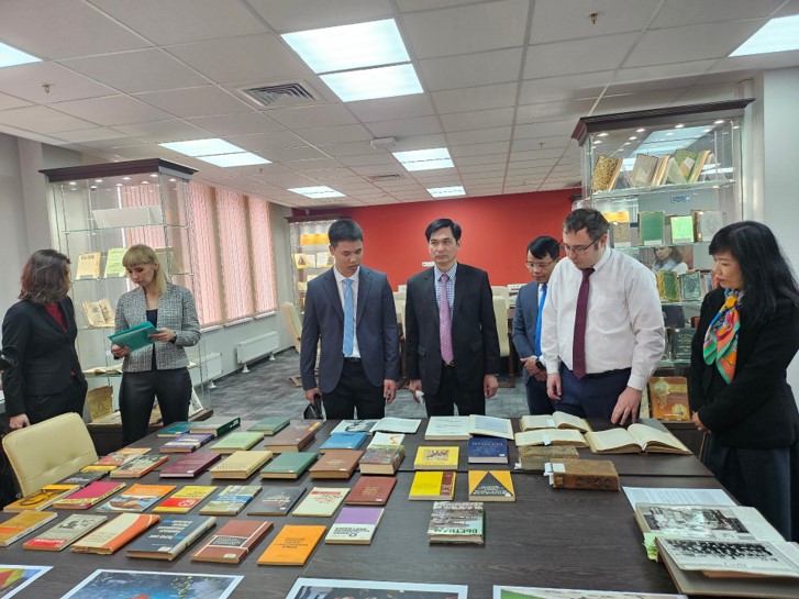 Sau Lễ kí Thỏa thuận hợp tác, Đoàn công tác của Học viện ANND đã tham quan khuôn viên Học viện Ranepa và Thư viện sách hiếm của Bạn - nơi lưu giữ Luận án Tiến sĩ của Cố Tổng Bí thư Nguyễn Phú Trọng.