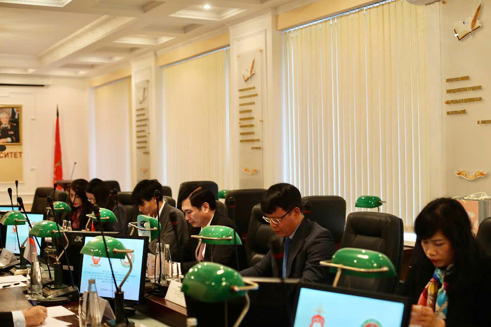 Đoàn đại biểu Đại học Saint Petersburg tại buổi làm việc.