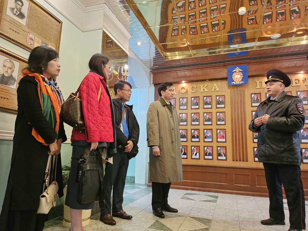 Đoàn công tác Học viện An ninh nhân dân tham quan Khoa đào tạo Phòng chống khủng bố Đại học Saint Petersburg.