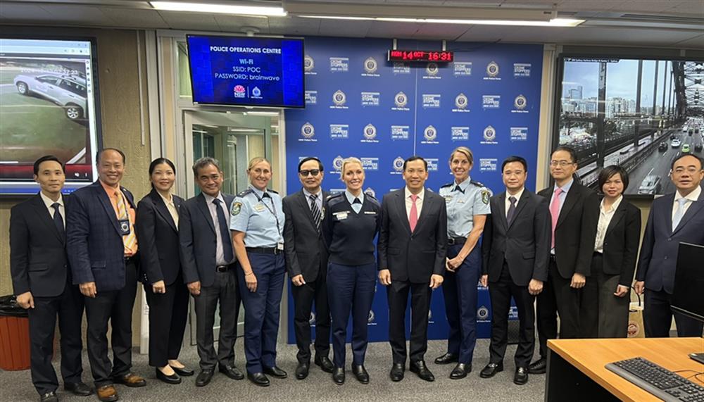 Thứ trưởng Lê Văn Tuyến thăm Trung tâm kỹ thuật và thông tin liên lạc của Cảnh sát bang New South Wales. |