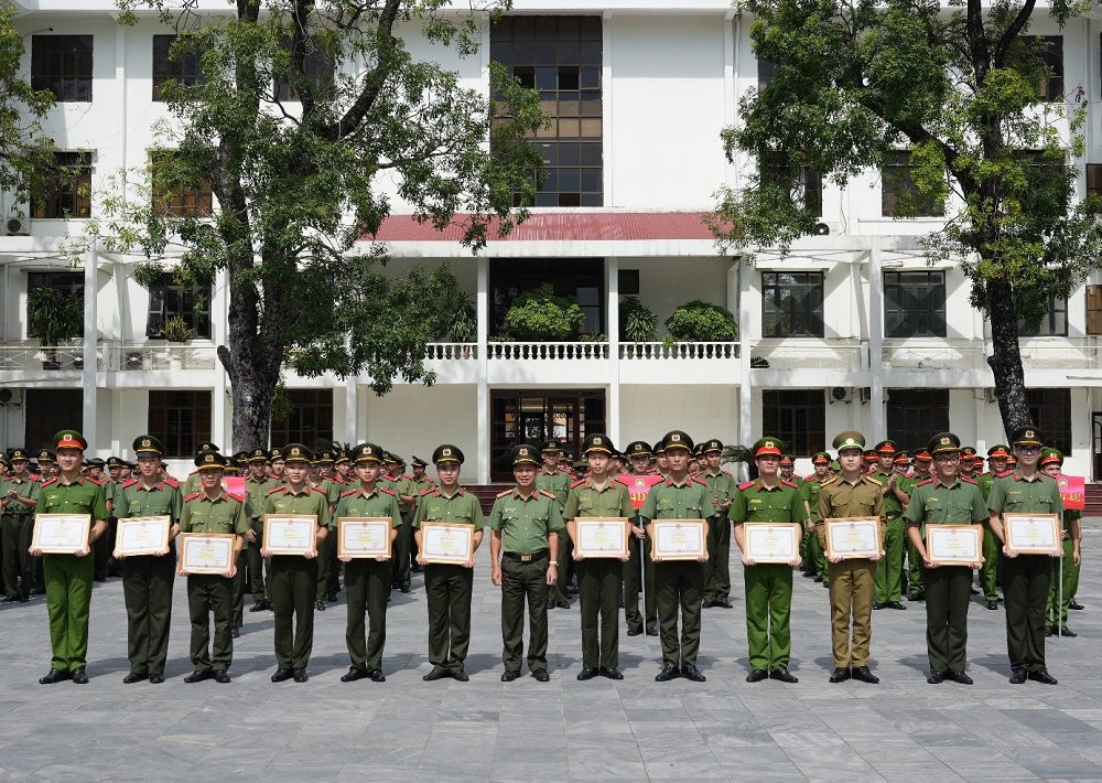 Hội thi điều lệnh, võ thuật Công an nhân dân khối học viên năm học 2024 - 2025 có nhiều đổi mới trong nội dung và cách thức tổ chức thực hiện, diễn ra từ ngày 23/10 đến 26/10/2024. Nội dung thi gồm: sắp xếp trật tự nội vụ, vệ sinh nơi ở; thực hành điều lệnh đội ngũ; biểu diễn võ thuật Công an nhân dân. Sau thời gian nỗ lực tập luyện nghiêm túc, 12 trung đội đã thể hiện ấn tượng và hoàn thành xuất sắc các nội dung thi. Bế mạc Hội thi, Ban Tổ chức đã trao 01 giải Nhất cho Trung đội B2LT14 K02; 05 giải Nhì cho Trung đội B4D54, B5D54, B1D55, B8D53, B4D55; 06 giải Ba cho Trung đội B8D55, B1LT14 K02, B6D53, B5VBMK3, B4VBMK3, Lưu học viên Lào. Ngoài ra, Ban tổ chức đã trao giải Nhất nội dung thực hành sắp xếp trật tự nội vụ, điều lệnh đội ngũ cho Trung đội B4D54; giải Nhất nội dung Võ thuật Công an nhân dân cho Trung đội B5D54; giải Nhất Chỉ huy điều lệnh, các động tác tay không tại chỗ và võ thuật cho học viên Đặng Xuân Tình B2LT14 K02.