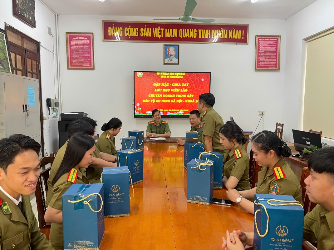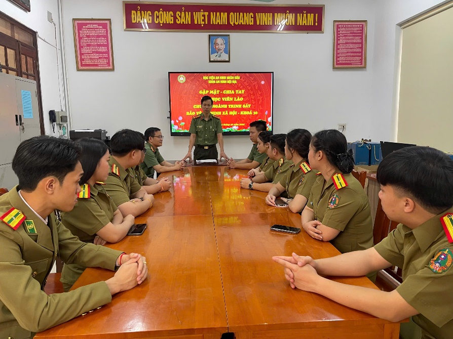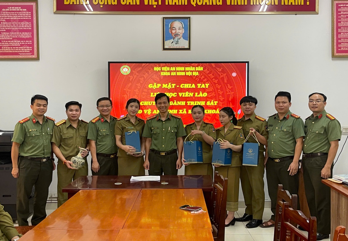 Ngày 24/10/2024, Khoa An ninh nội địa - Học viện An ninh nhân dân (ANND) tổ chức buổi gặp mặt, chia tay học viên khóa D36 Lào tốt nghiệp ngành Trinh sát an ninh, chuyên ngành Trinh sát bảo vệ an ninh xã hội.