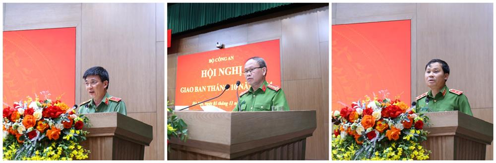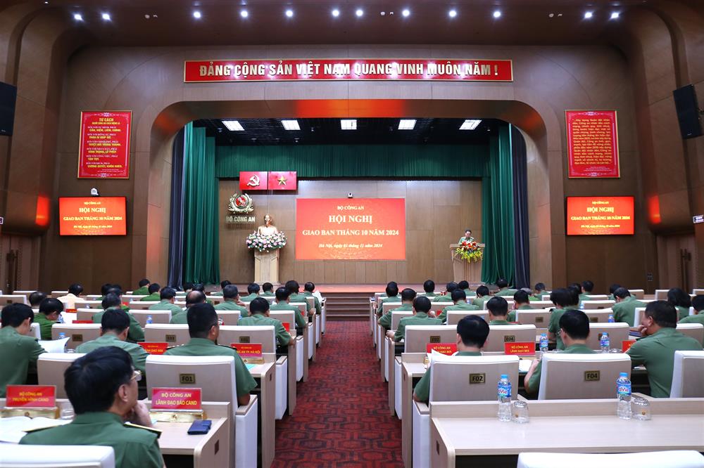 Trình bày Báo cáo tóm tắt tình hình, kết quả công tác trọng tâm tháng 10/2024, nhiệm vụ công tác trọng tâm tháng 11/2024, Thiếu tướng Đặng Hồng Đức, Chánh Văn phòng Bộ Công an nêu rõ: Tháng 10/2024, Đảng ủy Công an Trung ương, lãnh đạo Bộ Công an đã tập trung chỉ đạo Công an các đơn vị, địa phương thực hiện nghiêm túc, hiệu quả các chỉ đạo của lãnh đạo Đảng, Nhà nước về bảo đảm an ninh quốc gia, giữ gìn trật tự, an toàn xã hội.