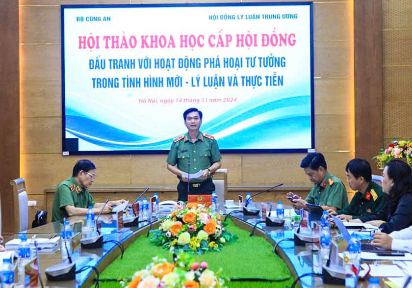 Phát biểu đề dẫn Hội thảo, PGS.TS, Thiếu tướng Trịnh Ngọc Quyên - Giám đốc Học viện ANND khẳng định, đấu tranh chống phá hoại tư tưởng là nhiệm vụ thường xuyên, hệ trọng, có vị trí, vai trò quan trọng trong sự nghiệp bảo vệ an ninh quốc gia, bảo vệ nền tảng tư tưởng của Đảng. Hội thảo nhằm quán triệt quan điểm của Đảng, làm rõ và thống nhất nhận thức về đấu tranh với hoạt động phá hoại tư tưởng trong tình hình mới; cung cấp các luận cứ khoa học để tham mưu với Đảng, Nhà nước trong lãnh đạo, chỉ đạo, xây dựng, hoàn thiện các quan điểm, chủ trương, chính sách, pháp luật về đấu tranh với hoạt động phá hoại tư tưởng; đưa ra các giải pháp nâng cao hiệu quả đấu tranh với hoạt động phá hoại tư tưởng, đồng thời góp phần bổ sung, phát triển, hoàn thiện lý luận về đấu tranh chống phá hoại tư tưởng đáp ứng yêu cầu, nhiệm vụ của tình hình mới.